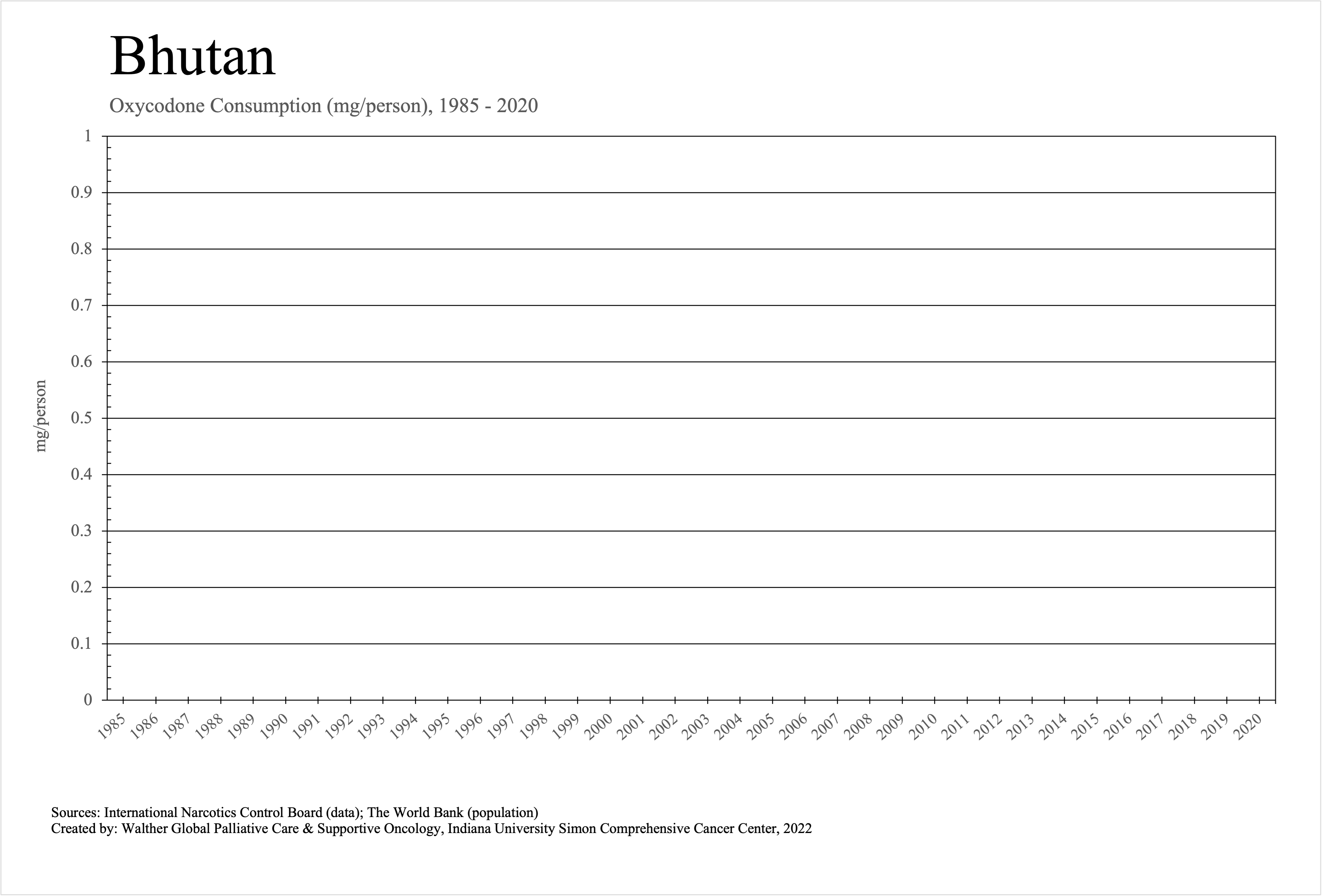 The graphs below provide the Essential Controlled Medicines consumption data trends from 1985 to 2020 in milligrams per capita and Morphine Equivalence (ME) milligrams per capita, as reported to the International Narcotics Control Board (INCB).